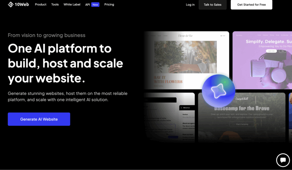 10Web is a powerful AI tool that helps you build complete WordPress websites in just a few minutes. It doesn’t just build the design, it also writes the text content, adds images, and makes sure that the site works well on phones and computers.